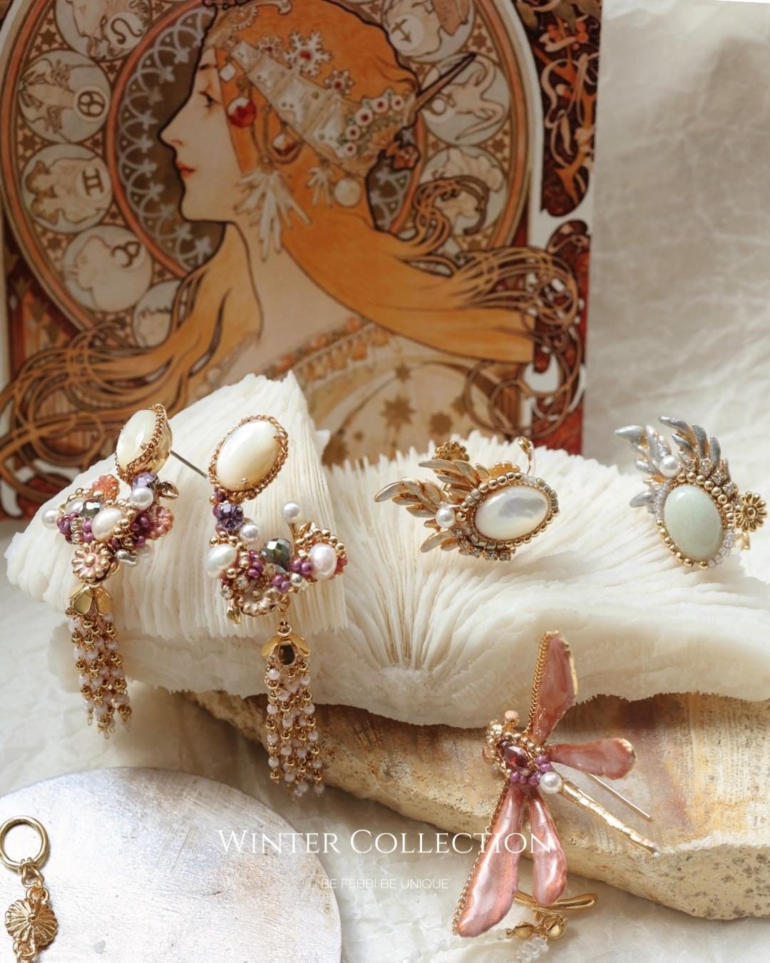 絢爛滿天星 珍珠 手工編織花圈 耳環耳夾