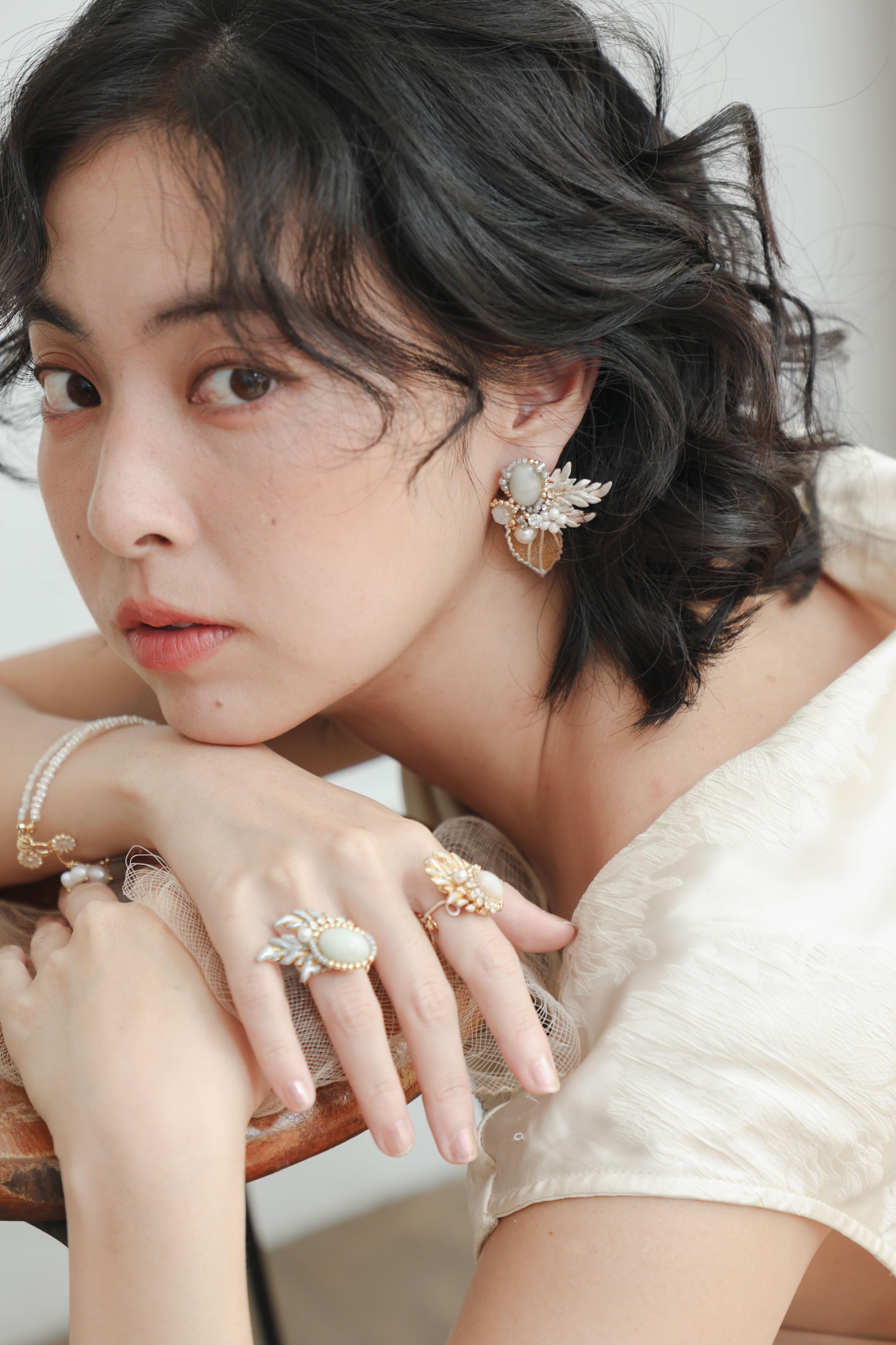 月光 Moonlight 珍珠水晶 耳環 耳夾 耳骨夾